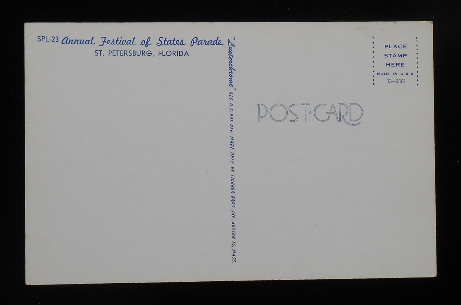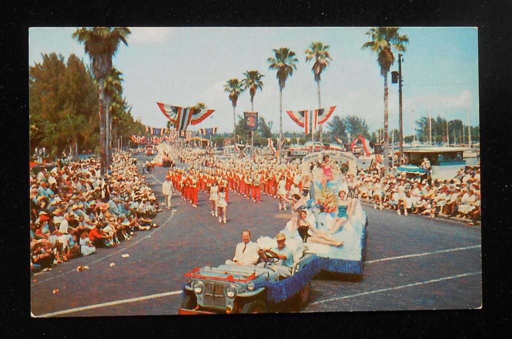 The first jeep is a later model CJ-2A. Behind it and the band is a second jeep. I think there is a 3rd jeep way in the back. This is part of the Annual Festival of States Parade in St. Petersburg, Florida. The festival began in 1913. In 1958, the festival’s name was changed to Sunshine Festival, so I would guess this is an early 1950s parade.