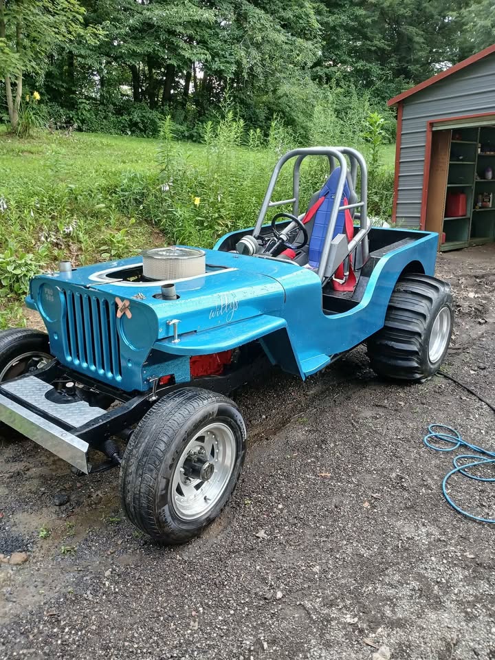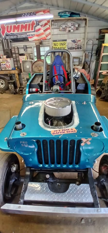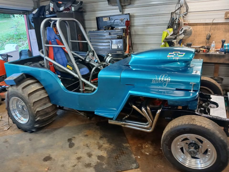 “It’s a 1946 Willys CJ2A tilt up shell, full drag chassis built by Rick Thomas in Hesperia ca., Wally World Custom paint. 568 C.I. Dart Big M. Gary Williams 1150 Dominator, Reher Morrison intake, heavily worked Dart Pro 1 heads, Ron Davis radiator, Eagle rotating assembly, Jessel rockers, oversized .904 Howard’s solid lifters, custom cam from Forsyth speed, Ross custom pistons, Custom Hooker headers, pro star 500 pump, Best of the Best from front to back. in this configuration it made 989 hp on an engine Dyno, but can easily be de-tuned to 800hp. I have complete professional build sheets. PowerGlide w/4500 stall (2k HP build), scatter shield and drive line loop. Modified Dana 60 (4 link) w/removable wheelie bar, spool w/6.17 gears, 35 spline Mosers. Areospace brakes, QA1 shocks w/adjustable height linkage. I Have a complete ledger of the build. make me an offer.”