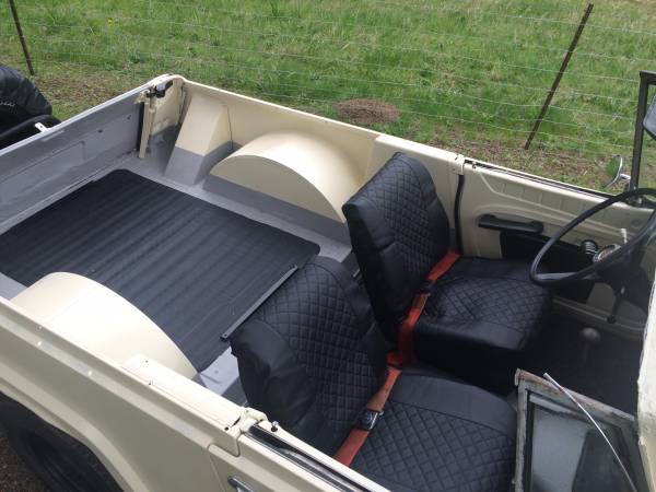 “This Willy’s Jeep is real clean, and runs good! Has a Buick V6 231 cu inch odd fire motor, and an overdrive transmission. this CJ has been stored for11 years. Just put new master cylinder and new front brake shoes and wheel cylinders on all 4 wheels. have the doors that go with the cloth top which are in perfect shape. one of a kind! Great Classic,Fun 4×4! very little off road use!”