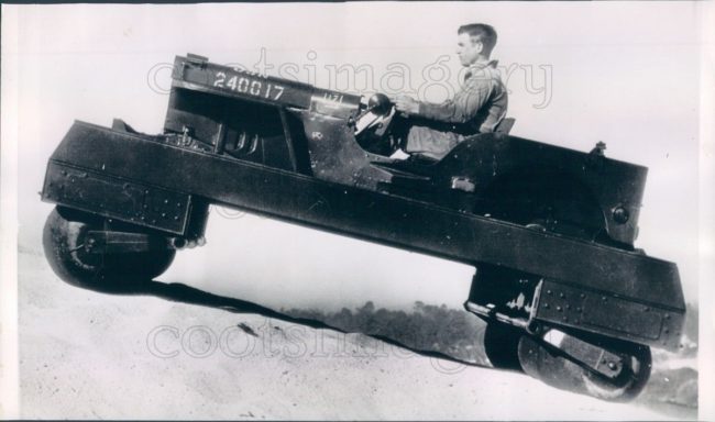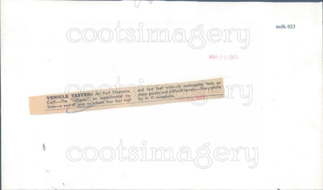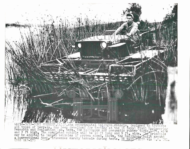 UPDATE: A great press photo of the experimental Rolligon jeep (More info on the Rolligon from a 2013 post shown below). This just expired on eBay, but I expect it will be relisted. I’ll watch for it. There’s a long article from the June 04, 1955, issue of the Saturday Evening Post here.