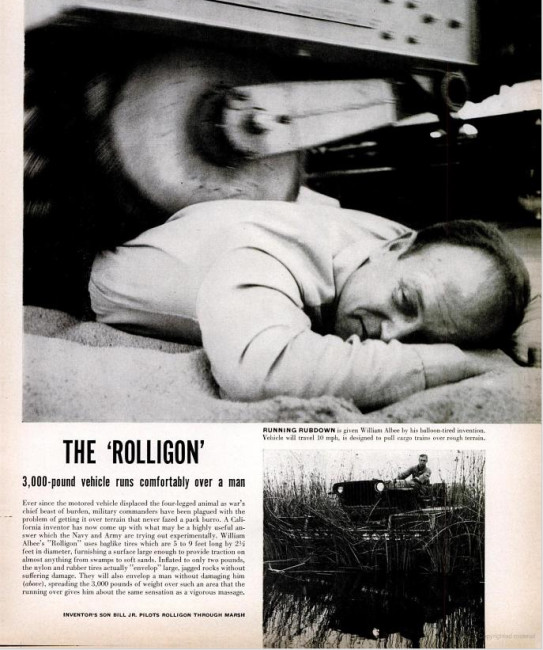 This June 04, 1955, article about the Rolligon goes into great depth about the history of the invention. You can see more pics here. The pages below are much clearer once you click on them.
