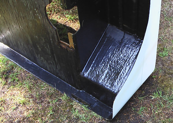 3. A fiberglass jeep body generally consists of two pieces that are created on separate molds: (1) The floor panel including rear wheel wells and (2) the outside of the body & cowl area. These two pieces are then fiberglassed/glued together. With this particular body a 3″ or 4″ tab rims the front of the floor, helping to secure the floor board to the external section of the body and strengthens the entire structure.