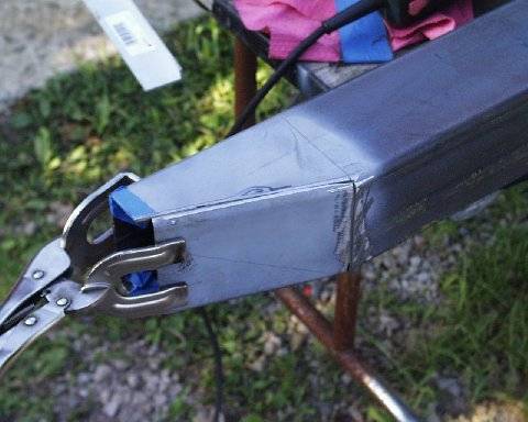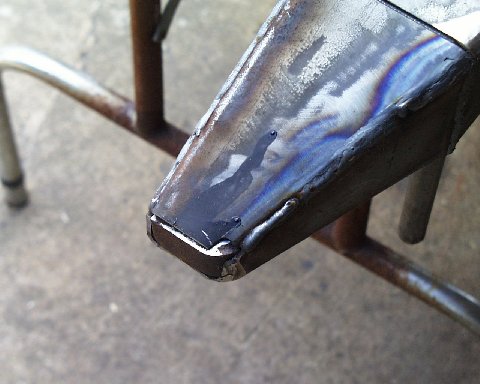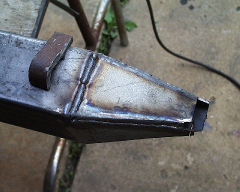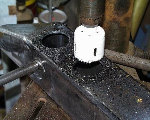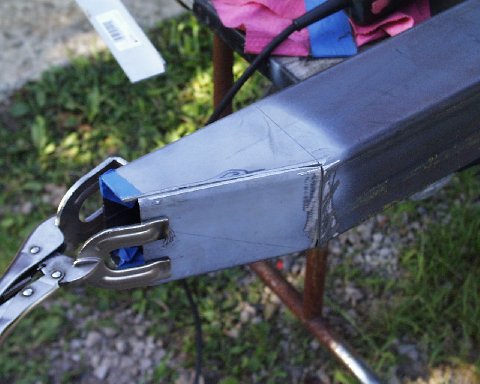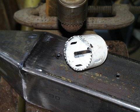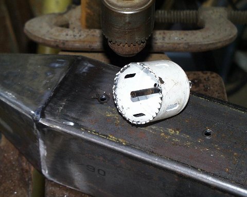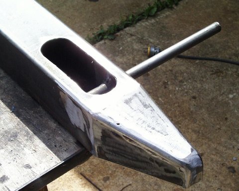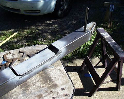 When I cut the center section out for the frame, I cut the top off at the radius first. Then I dropped down and cut away the rest of the tube. I found 3/4 solid stock for the pivot point and welded it from the bottom.
