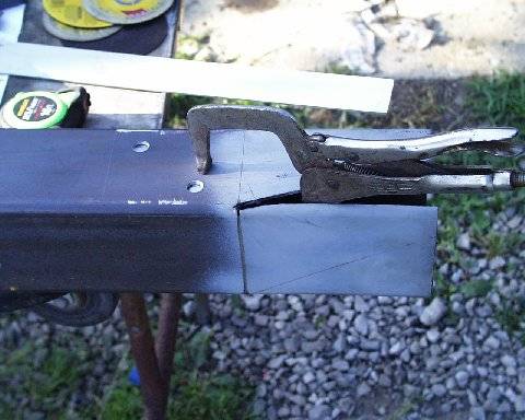 After cutting the first angle, I placed the 1/2 backer block inside the tube. Note: I marked the tube at the dimension and subtracted the radius and made my cut; this held my dimension. The other thing to note is the relief cut in the front of the tube for the bend.