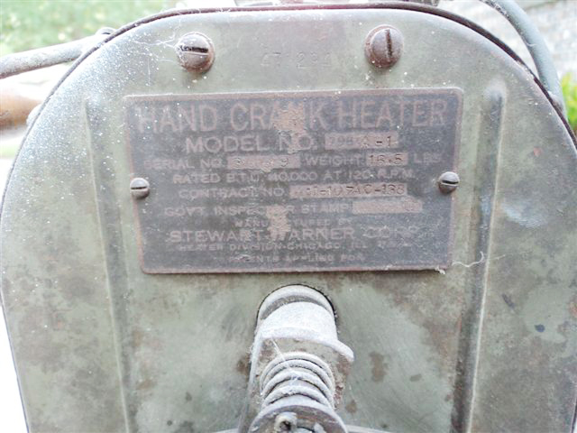 I think I have No. 9 or is it 10. Stewart Warner 796-A-1′ Heater, Utility (hand Crank)’. I hope to have it on display at the Bantam Jeep Festival WWII display this Fathers day weekend.