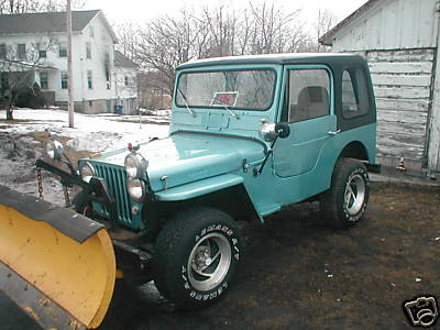 “Custom made fiberglass top (Removeable) Steel doors(Removeable) New wheel cyls,master cyl,steel brake lines brake shoes.new tires,700 miles on them .Moved gas tank to rear,new gas line .FOUR wheel drive is in very good shape,front wheel lockouts I added a front steering dampener, Drives good for the age it is,goes down the road good.Motor is a 1973 pinto 2000 cc motor,Original willys 3sp trans&drivetrain,clutch is in good shape.Body was patched up,they did good job.Heater is old add on with new core,homemade windshield defroster,Dual two speed wipers.Under carrage painted chassie black.Carb choke needs fixed,after warm runs good.HAS 6ft old style meyers plow,(not power angle)Besides the choke the only problem I know of is on transfer case PTO yoke seal bad.THIS JEEP IS FOR SELL LOCALLY SO AUCTION MAY END EARLY.”
