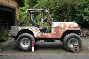“1966 Jeep CJ-5 factory stock Buick V6 and headers. Stock running gear 3.73 diffs. Running gear is intact and not broken. No bondo. No rust holes. Has not been wrecked. No frame cracks. Solid tub has been sand blasted bottom and inside. Swing away spare tire carrier. 6 point cage. Has been in my garage for 8 years. Ran and drove when parked. I began collecting new and used parts off and on with the intention of making a streetable rig. Good for some mild weekend wheeling. Some parts mocked-up on the chassis are GM Saginaw power steering with tilt column. AMC type rear mounted fuel tank includes filler cap insert (still has stock tank under seat). AMC type heater box. Other parts included are: locker spool for rear diff, GM (Blazer) front disc spindles, door frames, Rancho 1 1/2″ springs and shocks. 1″ shackles. Aluminum 15″ wheels. New parts: Spring bushing kit, rear diamond plate, LED taillights, body mount kit (stock height), windshield seal/frame to cowl seal, pedal rubbers, shifter boots. The only body damage is very minor on right front fender. Surface rust”
