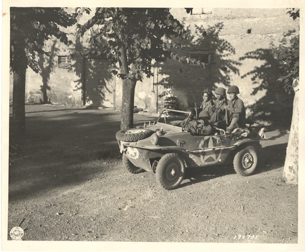 On the heals of yesterday’s GPA, I thought I’d do a brief shout out to the Schwimmwagen. You can read more and see more pics about the Schwimmwagen at Brian’s site. Here’s a pic (below) from July 12 1944 (from Brian’s site as well). Here’s some youtube videos.