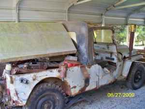 “1948 willys jeep with a Ford bronco v6 engine. Was running and being used when an axle broke. Has been parked since, about 10 years. Comes with lots of extras including tranfer cases, transmissions, a hard and a soft top, blade hardware and odds and ends.”
