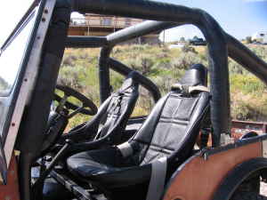 One of the more unusual features was the emergency brake (at least I have never seen this mod before). The emergency brake is located very nearly where you’d install an overdrive shifter, and looks like one too, but instead has a button on the top of the shifter. To engage the emergency brake (located on the back of the dana 18) you pull the lever towards you. To release it, I believe (didn’t test it) you push the button on top and it releases. I really liked this idea and think I’ll try to implement something simlar for my back emergency brakes.