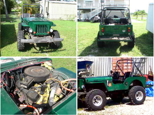 “willys jeep. street legal. title in hand. brand new super swamper tires. 304 amc v8 in it. very strong motor. need to sale. 3200 cash or trade for motorcycle. some rust to body and frame. call 239-910-1075 or email for additional info or pics”