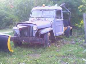“Willys jeep 1 ton pickup , flat 6 3speed. turns over but have not got it running. comes with a plow. Would have to be trailered. Asking a $1,000 dollars for it or best offer.”