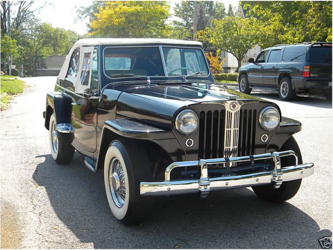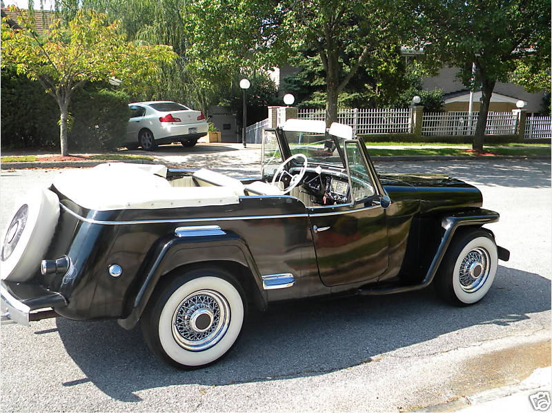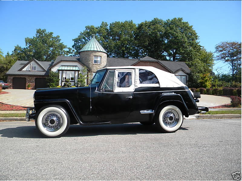 “YOU ARE VIEWING A 1948 WILLYS JEEPSTER CONVERTIBLE THAT RUNS AND DRIVES FLAWLESS. THE INTERIOR HAS BEEN RE-UPHOLSTERED ABOUT 50 MILES AGO, ALONG WITH THE CONVERTIBLE TOP. IT IS A REAL 1960’S HOT ROD. THE ORIGINAL MOTOR HAS BEEN REPLACED WITH A STUDEBAKER V-8 WHICH RUNS FLAWLESSY. IT IS STICK WITH ORIGINAL JEEPSTER TRANS AND REAR AND FRONT END. JEEP IS FROM TENNESSEE IT NEVER HAS HAD ANY ROT OR RUST, SUPER CLEAN BODY. ALL ORIGINAL LAQUER PAINT JOB- CLEANS UP WELL, BUT COULD USE A REPAINT TO MAKE IT MINT. IT HAS A 3 SPEED WITH OVERDRIVE AND HAS BEEN CONVERTED TO 12 VOLTS. EVERYTHING WORKS THIS IS JUST A BEAUTIFUL FUN LITTLE HOT ROD …”