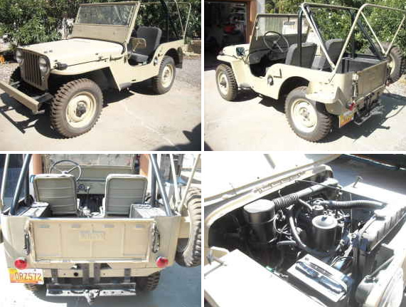Restored /Original 49 CJ2A Willey’s. Has been long term project car I finally finished up but have moved on to other toys/challenges and can use the garage space and cash! So no trades please. Runs well, everything works. Original engine, tranny. Converted to 12 V, new engine wiring harness, fuel tank & lines, fuel pump, brake lines, master cylinder, front seats, custom roll bar, miltary tires/wheels (include side mount spare). New flat desert sand paint, interior coated with flat black bed coating. Have new canvas military top (no sides) that’s never been mounted.”