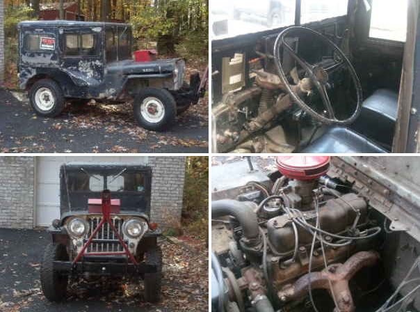 “Up for sale here is a 1947 willy’s hard-top jeep. Bought 35 yrs ago and used during hunting season thru the 70’s and into the 80’s in upper Pa where I have family. The jeep has been stored indoors in my garage and well serviced thru the years. Has a 4cyl overhead valve engine, manual trans and manual locking hubs as well. Recent new parts include: radiator and newly rebuilt fuel-pump. Up grades include radio and electric wipers. Jeep runs great, all guages work well and frame is solid and tires good. I mounted a tow bar to the front bumper years ago to pull to the mts, as you may well know they are factory geared for the off road. Any ?’s call717-818-6392.”