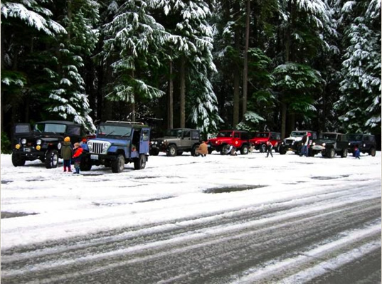 Instead they elected to jump in their jeeps and head towards the woods, mountains and snow of the Naches Pass to find Fish and Chips.  It was probably their crazy President’s idea, yes Mitch?  I’m not sure where they ate their fish and chips once they reached the other side, but as the pictures show, it must have been a beautiful, winterland run.