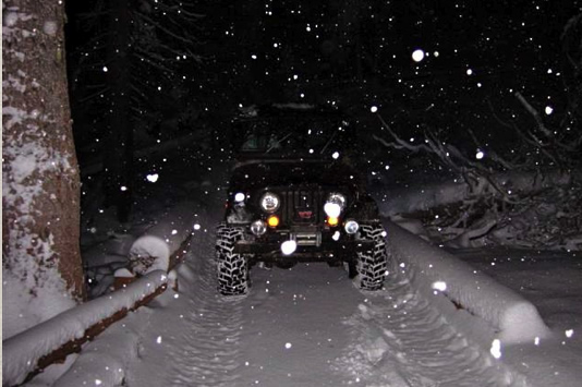 On the website, the club notes, “Nine Jeeps took to the Naches Trail for some Fish & Chips on the east side of the Naches Pass.  The snow was fun, but massaged into ice by the Jeeps.  Some of us went home on asphalt after a late lunch, others took the trails well into the night for some fun night Jeeping.”
