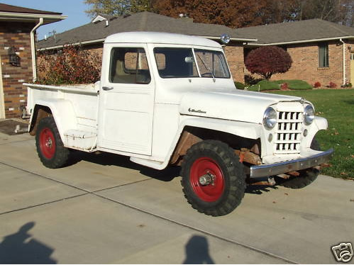 “1951 WILLYS JEEP PICKUP 4WD…VERY ORIGINAL W 6V SYSTEM…4 CYL. HURRICANE MOTOR, RUNS STRONG, NO OIL USE, NEW DIST. CAP, ROTOR, PLUG WIRES , PLUGS, BRAND NEW INTERSTATE 6-VOLT BATTERY…REDONE SEAT….NEW WINDSHIELD GLASS… NEW GAS TANK W / SENDING UNIT…CORRECT FLOOR MATTING…HAVE HEADLINER KIT, NOT INSTALLED…..HAVE NEW EXHAUST HEADER PIPE W / MUFFLER, NOT INSTALLED…HAVE NEW CORRECT WEATHERSTRIPPING FOR DOORS, NOT INSTALLED…REBUILT MASTER CYLINDER…HAVE NEW HORN KIT , NOT INSTALLED, NEW WIPER BLADES….HAS REAR PTO W / WINCH (WINCH MAY NEED HELP)…OLDER BUT GOOD HEAVY TRACTION TREAD TIRES…WARN LOCKING HUBS….BRAKES NEED BLED. I PUT NEW WHEEL CYLINDER ON RIGHT REAR BUT NEVER BLED BRAKES….BED HAS SURFACE RUST BUT IS SOLID W ITH NO HOLES…THIS JEEP WOULD MAKE A VERY EASY RESTORATION BACK TO ORIGINAL….ANY QUESTIONS AT ALL, PLEASE CALL 618-304-0160 OR EMAIL”