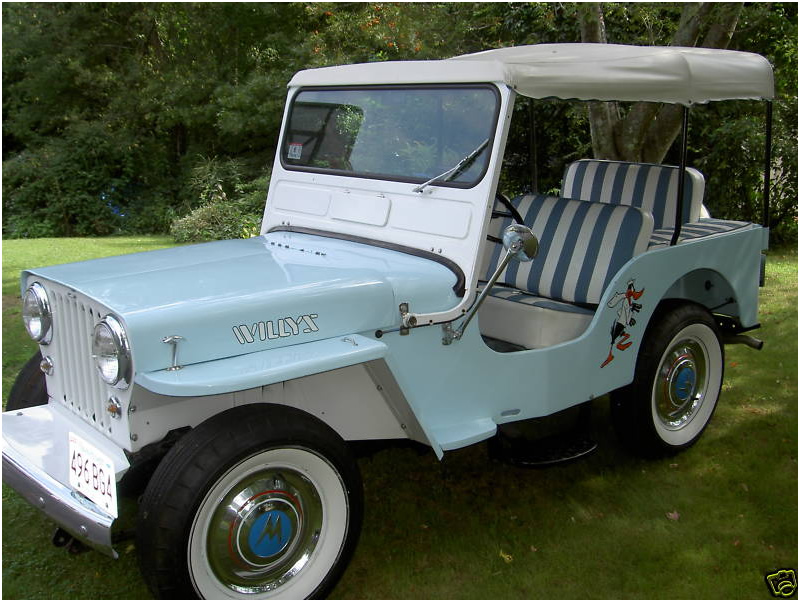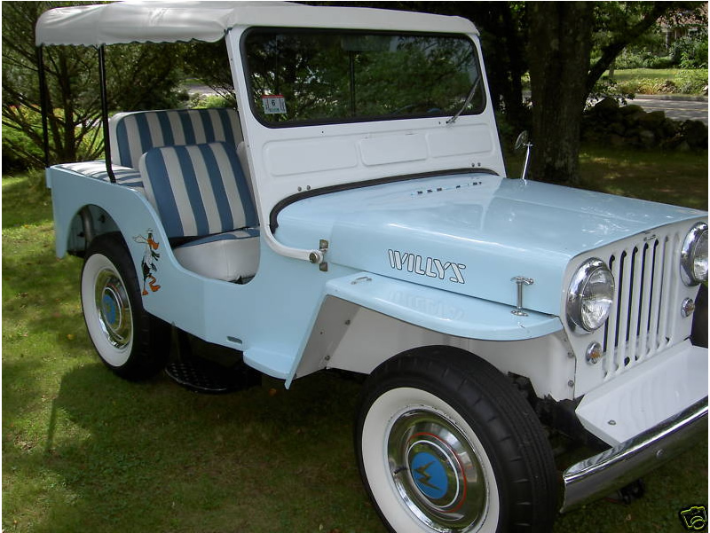 I would think pics of jeep w/celebs & a name of movie or two that this jeep was in would help in deciding value. Not sure if Larry is right but there seems to be some questions if it is a Surrey being it is a 56 or the conv model which as stated came with chrome bumpers & gravel guard & rear mounted spare. No mention in ad’s of the aftermarket or non original hood on jeep, so could fenders/WS frame be from another jeep also. It is a very clean DJ3A, but I would hesitate in calling it a Surrey, Didnt the Jeep Gala come first in early 59, wonder why seller didnt call it a Gala, as it was the earliest named model sold. ???