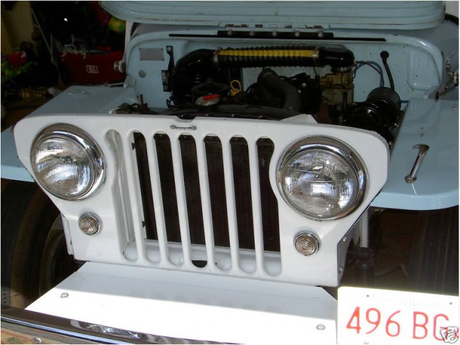 This DJ3A Surrey was advertised as a 1956 model and like everyone else, I questioned that it was a Surrey, however, the serial number plate was shown on eBay and from that I felt it was a 1960 model and after conversing with the previous owner, Mr. Chmiel, prior to my purchase, I felt that it was correctly a Surrey from 1960. The serial number on this DJ3A is verified by frame number and original serial number plate as being a 1960, 56337 19170, and is now titled in Arizona properly as a 1960 Jeep Surrey. The owner of the Pioneer Jeep Garage in Peabody, MA, who owned this Jeep from 1982 until May 2009 has verified that he bought this as a Jeep Surrey and that it had the original Surrey equipment when he bought it. It was originally a very light green with white. I have found traces of the light green underneath the current blue paint. Since my purchase of this Surrey, I have been over it, under it and have found nothing to indicate it is not a 1960 Surrey. The rear drawbar was added to the vehicle in May, 2009, by Mr. Chmiel, owner of the Pioneer Jeep Garage, upon the sale to Mr. Considine, at Mr. Considine’s request, as were the 1967 NOS Jeep embossed seat belts. The hood is non-original and when purchased by Mr. Chmiel in 1982, showed that it had been bent and then reinforced with square tubing, apparently due to movie activites involving Annette Funicello and Frankie Avalon. He discarded the hood and replaced it with a non-original piece. Unfortunately, he was unable to provide photos of the actors on the hood. Such is life!