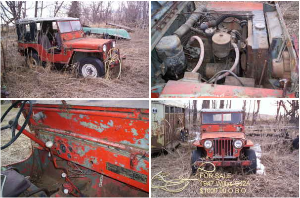 “1947 WILLYS $1000.00 O.B.O. Great shape for restoration. Body & frame very solid. Not much rust. What you see in the pics is mostly just missing paint. Not rust. Motor & Hubs had been rebuilt years ago. Hasnt been ran in a few years But use to run great. Needs gas tank & brake work. Dont think it would take much to get it running.Family lost interest in it & left it to me. ”