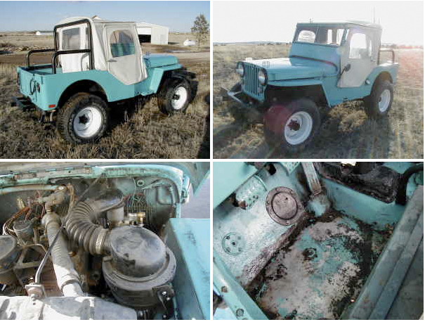 “this is a nice cj2a that was restored at one time. has the l head 4 cylinder. body was sandblasted as was the frame. runs great, good brakes, headlights work on hi and low. tailights work, but dont think brake lights work. has 265x75x16 tires, and about a 3″ lift. have about $3800.00 in receipts from work done, rebuilt trans and transfer case. has a heater and good shape 1/2 cab soft top. needs some small things done. has rancho lift and shocks, full floating ww2 axle, 12volt system. solid floors, hat channels have been worked. clear colorado title in my name. asking $2999.00 before it goes to e-bay. e-mail or call #303-877-4083.”