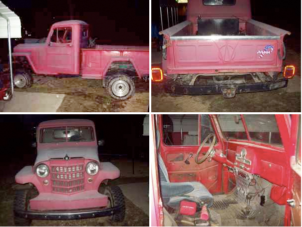 “1953 willys overland custom. its on a dodge powerwagon chassis with a 318 and 727 transmission automatic. needs new tires, pait and interior, along with a master cylinder and passenger soft brake line”