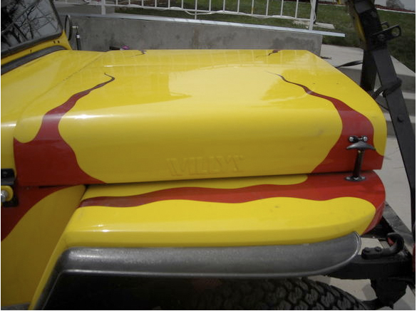 Brett spotted this interesting find. There are at least 3 unusual features on this CJ. The most obvious one is the paint job; unclear what the inspiration was, but it’s unusual. The second feature is the automatic transmission that has a column shift rather than a floorshift, which is a clever mod. Finally, while I have seen expanded windshields, I can not remember seeing an expanded windshield that uses a CJ-2A frame (with the exception of the one below this post — strange how these things surface sometimes).
