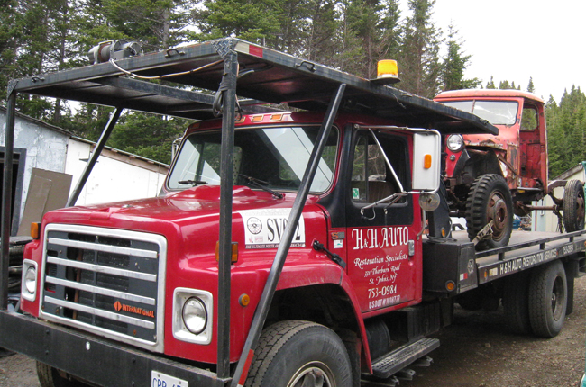 This truck was headed towards a crusher until Carl saved it. He’s not sure what he’s going to do with it, but he felt there was too much value to have it crushed. Note the custom wheel creation.