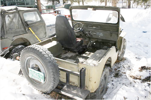 “1947 Willy’s CJ-2A with Hardtop and doors. It has a F-Head motor with a 3 speed manual transmission and a CJ-3A windshield. I bought this for $1500 almost 5 years ago. It started right up and drove until I brought it home which is right around 9,000′. I could not get it started and since it has just been sitting in the driveway. I had the starter rebuilt at the cost of $189.81 with a receipt to show. At the moment the battery is dead and the carb. needs rebuilt or replaced. My plan was to upgrade the ignition and put on a new carb. This is a good old flatfender that just needs a little time and money. There is a swing away tire carrier with 2 jerry can holders.”