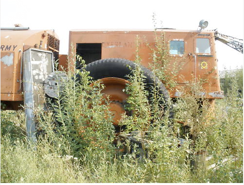 The enclosed pictures are of a sister unit here in Alaska. It’s important to note this is one of the last existing units of this type anywhere. This unit consists of the control car and 3 trailers (mostly aluminum). All the units have tires and we also have a large amount of extra tires & wheels. This unit does not run and is not operable however according to Le Tourneau, the manufacturer most if not all parts are still available and or re-buildable. Would also make a terrific static display for museum. This unit is for sale as is FOB North Pole, Alaska, to the highest bidder above the reserve set by the estate.”