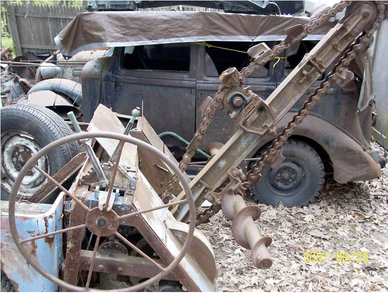 “1948 willys jeep [but not really sure]. It is a nice early CJ with a period [first series] jeep a trench attachment. I also am including a period willys jeep option snow plow. It came off my 47 CJ. I planned on selling only the trencher but have a offer to buy another jeep with plow so I am selling the whole package. The jeep tub has rust and the roof is in rough shape also, it all can be put back together. The jeep run 3 yrs ago and I had it firing & running with gas down the carb but the starter stopped working. This is a rare piece and wouldnt take much to get it working again. It dug trenches for water, electric and a drain line over 150′ within the last 5yrs. It has good tires and a towbar for short towing. bill of sale only. no papers. Buyer to pickup or I have a local guy who can deliver it for a fee. Payment within days of end of auction. Email me with any questions.”