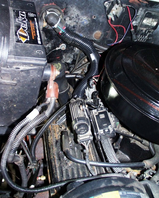 The harness enters the engine space in the same place as the Blazer.Note the valve covers, anyone seeing a nice set of center bolt aluminum valve covers for a 4.3 let me know.