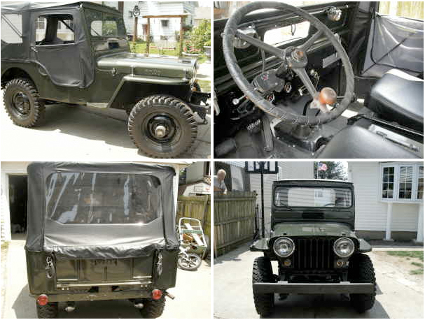 ‘1948 Willys C-3 Military jeep. Jeep has been restored and is in excellent condition. 4cyl 3 spd. 4×4. Original drivetrain, runs excellent… New Top (soft) w/ removable doors. asking 6500.obo”