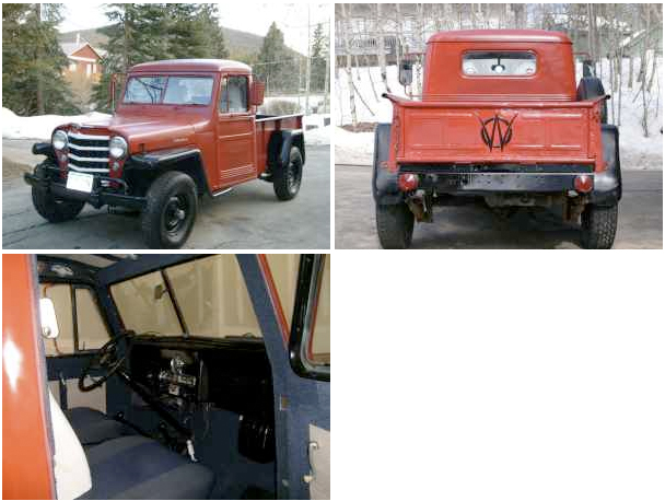 “1952 Willys (Jeep) Pick-up. 4WD works great & can get you through the deepest of snow. New brakes, tires, interior, glass, & paint. This is a fun eye-catching truck, which would be perfect for a business to advertise OR for personal use. This truck will go anywhere & do anything. Priced way below what it’s worth. $4000.00 Or Best Offer