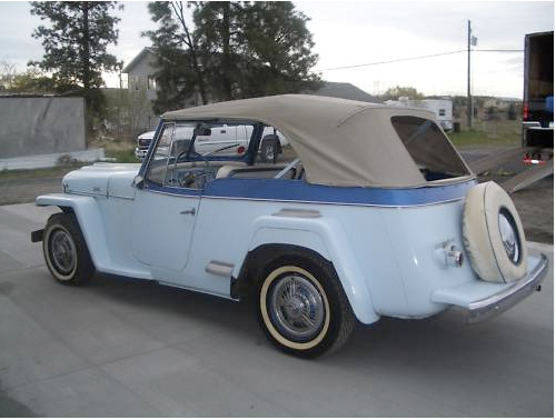 “Parade car. This jeepster is an older restoration from Ohio. It was a Shriner’s parade car and was in the Jeepster Club of America. I have owned and enjoyed it for three years with no problems. It has a Buick V6, power steering and an automatic transmission. I’m sure the original mileage is over 100,000 miles but I have no idea of the true miles. It was obviously restored at one time but would need to be redone at some point if you want a show car. It looks good going down the road and garners lots of attention and thumbs up. Top is good with a boot and all side windows. It is the original color scheme which was a hard to get color. It has sixteen horns and a great eight track with your very own Johnny Cash tape! I can tell that it has had some rust repair in the past which is to be expected in a 60 year old Jeepster. Buy this just in time for your local 4th of July parade. Vehicle is for sale locally, I reserve the right to end this auction early.”