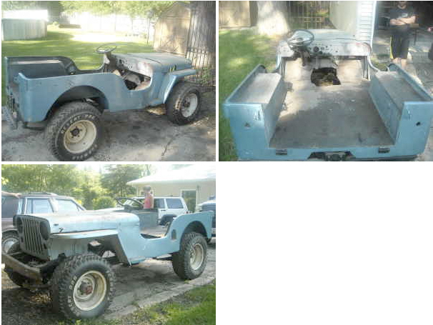 “1948 Jeep Flat Fender. Jeep in poor condition, frame and axles are good, grill and hood are good, has early fifties military hood with snorkel cutout. No engine or trans, I have a few other misc parts too, windshield frame that is in good shape, military fuel tank. Call for details. 630-624-4242 Matt.”