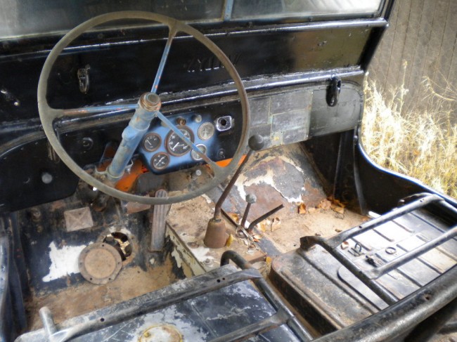 look closely, the steering tube still shows the upper column shift hub, it has a full floating rear differential, and regaring the dash plate, i think someone installed the M-38 plates, if you look close enough, you can see, and count the 12 holes (4 per data plate) for the 3 original interior dash plates. captured nuts in the square holes on the underside of the hood (early 2A trait)…. firewall knock-outs behind the carb for the early style heater still in place…i would be curious to know what the serial number, and body number tags on the firewall, on the passenger under the hood say…
