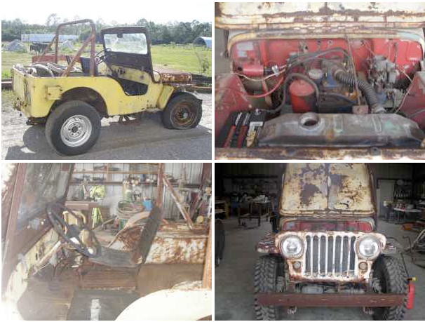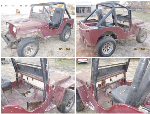 “1949 Willys CJ2A Jeep. Has good frame, original 5:38 axles w/ upgraded brakes, heavy springs and I think rear diff locker. No drive train. Has original hood, front fenders and windshield. Tub is fiberglass. Has Bestop soft top frame and door frames (top rotted away). Good title. This is good for a Jeep build starter project, parts, or another Jeep with title problems. CJ2A Jeeps were made from 1945-1949. The flat fender body and frames (except for the CJ3B) are basically the same from 1940-about 1954 when they changed to CJ5.”