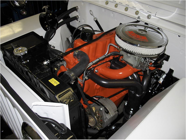 This Jeep has a VERY RARE 1962 Chevy II 153ci 4 cyl engine!!! This block is date coded ’61, so its an early production one. The block has been bored .040, has N.O.S. Jahns domed racing pistions from the 1960’s yielding 11:1 compression, the head has been reworked to accomodate the biggest valves it can handle, it has a steel crank, the wildest hydraulic Competition Cams camshaft available for the street, custom made header and a custom made intake manifold with a Rochester 2bbl off a 283 on it sporting a tri-power top on the carb. The entire engine has been rebuilt and runs very strong and sounds great! Doesn’t sound like a rice burner 4 banger, it’ll idle at 550rpm and sounds hairy! Like the saying goes: No replacement for displacement! The transmission is a 1960 SM-420 bull low 4-speed. It leaks fluid and could stand a rebuild, it still works pretty good..”