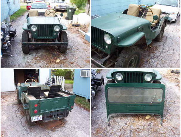 “This is a ’48 Willys, it has been parked for over a year. Ran when it was parked. The lights have been converted to 12 volt and it has 15″ rims on it other than that it is original. I removed the wiring to replace it with more original style but have not finished this. The jeep ran good when it was parked, the tranny and transfer case have been completly rebuiltIt and the front shafts have been replaced. it has a one piece windshield frame with the glass cracked. If you want more pics email for them.”