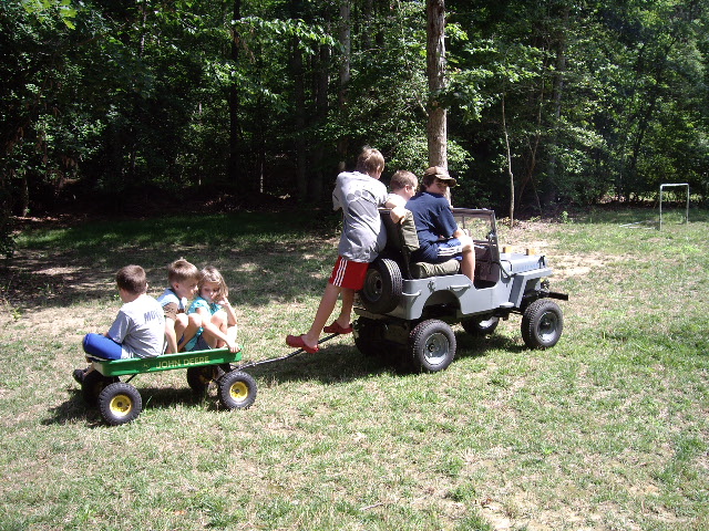 Nice 1/2 scale working model! There are many memories being created for them-thar kids. They will be true Jeepers when they grow up. Nice Jeepster, too. Will you build a 1/2 scale Jeepster, too?