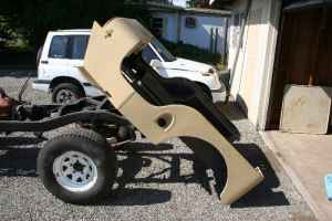 “1948 Willys Flat Fender CJ2A. Small block Chevy V-8 with Edelbrock manifold, Holley 4bbl and HEI. SM465 4 speed, AA adapter, Dana 18 T-case, Saginaw power steering, On plated and reinforced original frame and axles with a spring over. Brand new body tub, front fenders, tailgate. The new body kit was $3,000.00 alone. Willys scripted hood. Good used Windshield. Includes collector lisc plate and a couple boxes of spare parts including some military black-out lights and some extra beige paint. Supposedly most of the frame work was done by TC’s off road in Kent a few years back. Not my project, bought it for the new body, but decided to go 3B High Hood instead.”