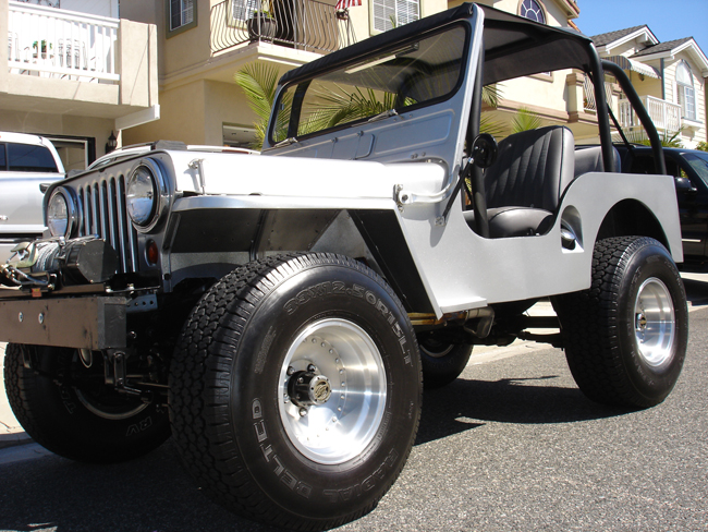 (08/30/09) This looks like an old school flattie with the aluminum cast slot rims. The cage looks solid and the updates sound perfect for an offroad, onroad jeep.