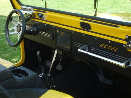 Continuing with yesterday’s e-jeep, while not a 4wd vehicle, this eco-motor jeep look-a-like appears inspired by the CJ-5.  According to ecofriend.org, “The Fun retails for $24,995, though they have an introduction price of $19,995,  and can deliver a top speed of 70mph and an operating range of about 100 miles between charges. The vehicle uses the customizable MiMod EV monitoring system from EV Instruments, which is an integrated system of sensors, monitoring logic and operational controls that can be customized to suit any type of EV.”