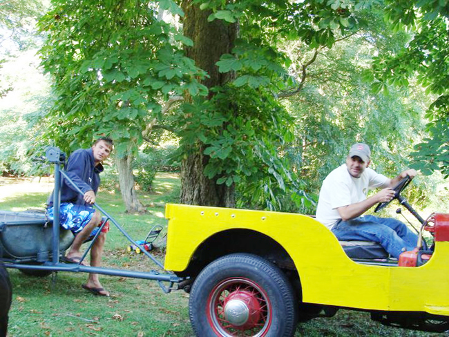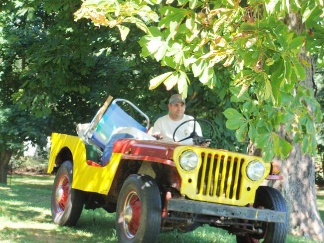Out there he put plywood floors in, added yellow paint(out of a can) and named her Buttercup after a cow that was once on the property. For 20 years she was our tractor and stuff hauler. I learned to drive her when I was 10. Sometime in the 80’s Skip added the wire wheels and had a trailer built. By 1990 it was decided that she was getting tired and was replaced by a John Deer tractor.