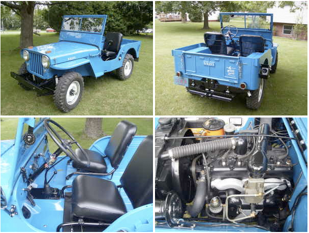 “This little girl got her second chance at life. She’s a 48 that was stripped to her frame and redone. There was 14,901 miles on it when I got it, so the motor is untouched and starts right up. I put 152 miles on her so far since I finished her. The body is all Steel!!!! Not a Bondo bucket like a lot of them I’ve seen. I replaced all the rusted areas with the original thickness steel, not the cheap reproduction panels. Seats were redone to original specs. This one was not ordered with a rear seat so the factory plugs are still there! The suspenion has all new shocks, bushings, bolts, brake lines, brakes, everything. She still has her 6 volt electrical system. Now if you are looking for one for the originality this might not be for you. First off you couldn’t get a blue with white wheels jeep in 48. Also, the frame and axels are out of a CJ3B (stronger then the CJ2A), comes with the original axels if you want. And I added turn signals to make the drive easier. I did this jeep to be USED, not a trophy getter, so it is not 100% perfect. Thats why I did the things I did, but she still won best of class at the one car show that I did take it to. I DON’T HAVE TO SELL IT. So no low ballers or tire kickers. I just thought I’d let someone else have fun with it, and I’d start another project. My cell phone number is 1-920-901-6568”