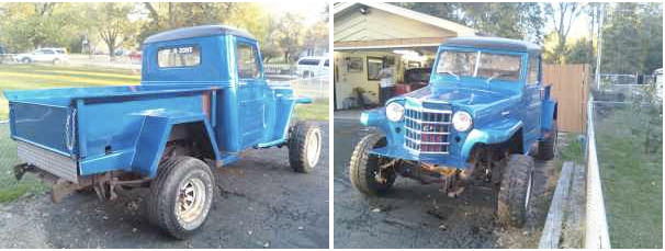 “1952 willys pickup cab has no rust. It is sitting on a 1975 chevy blazer chassis. All body mounts are done,steering hooked up,brakes hooked up,and throttle. Needs to be finished. not driveable! call for details Dave 630-361-4804 2000.00 obo or possible interesting trades?”