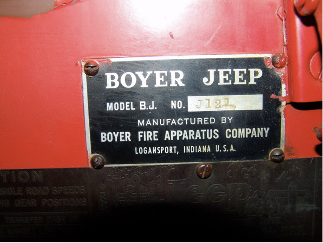 It is extremely hard to find an original Boyer jeep with that many accessories still on the vehicle. To find out more about Boyer jeeps please go to http://cj3b.info/Fire/fireindex.html.