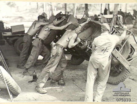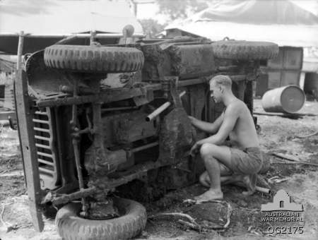 Warren alerted me to the Australian War Memorial Online and found these images of jeeps on their sides.